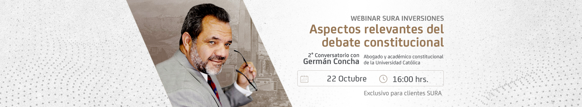 Expositores: Germán Concha, abogado y académico constitucional, quien abordará en esta oportunidad distintas aristas que componen e impactan la Constitución en un país.
